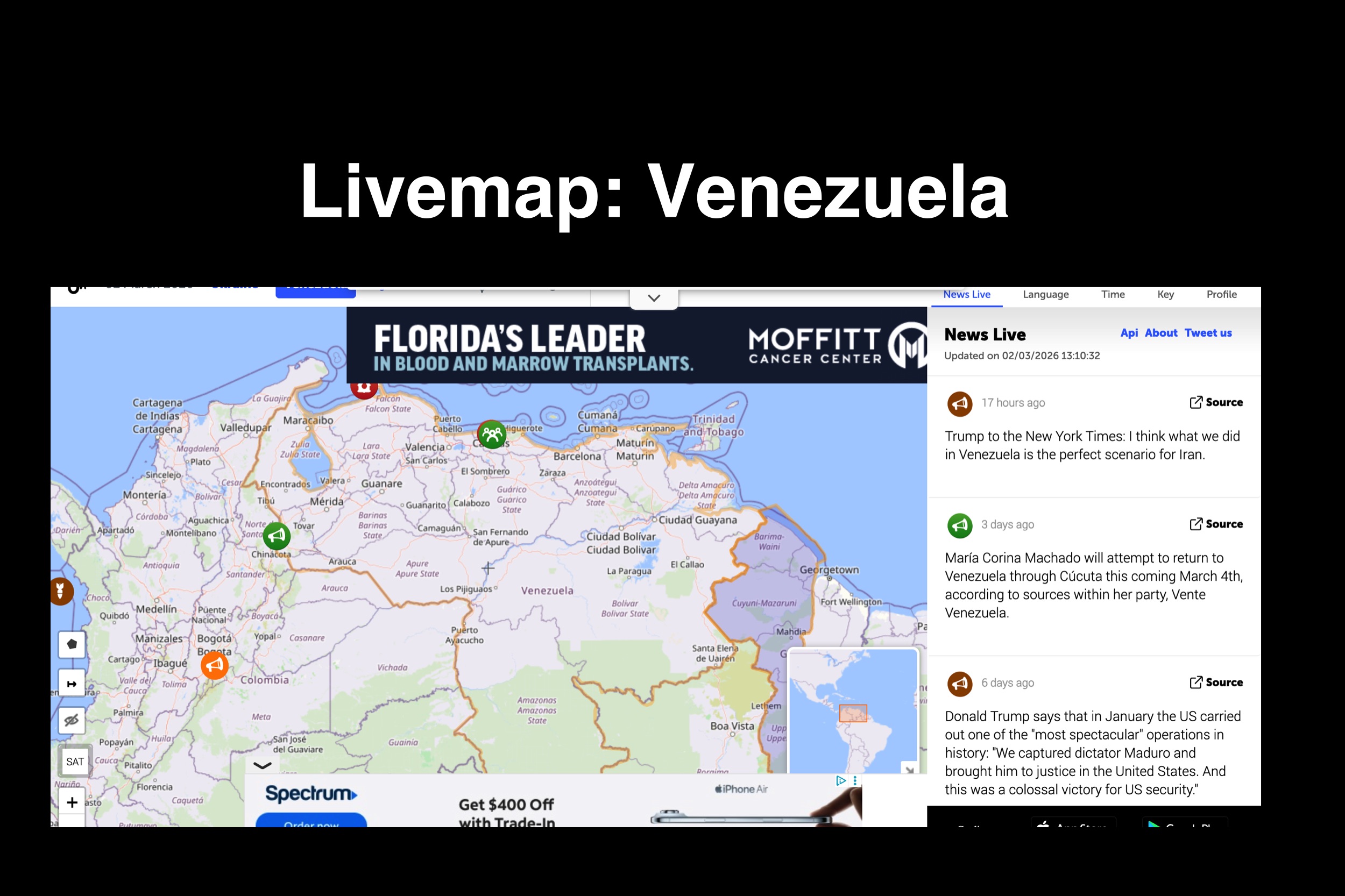 LiveUAMap’s Venezuela map is a real-time monitoring platform that displays political developments, protests, security incidents, and military activity across Venezuela on an interactive geographic interface. The site geolocates breaking news reports onto a live map, allowing users to see where events are occurring instead of relying on scattered headlines or delayed summaries.