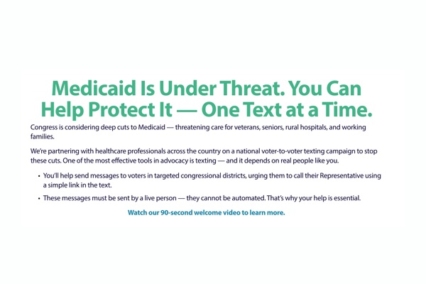Protect Our Health Care: Texting Program DescriptionWebsiteTurn your thumbs into weapons of mass persuasion. This texting team mobilizes voters to defend healthcare—and ruin a few politicians’ days in the process. Share this: https://www.protectourhealthcare.org/texting-program Call to Action Activities, Messaging Tools, and Public Health and Healthcare civic engagement, grassroots action, healthcare advocacy, texting campaign, and voter outreach Previous Next